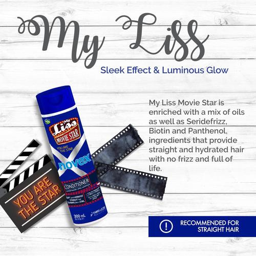 OverzichtNovex My Liss Movie Star Conditioner is enriched with a mix of oils that bring shine and nutrition to the hair. These amazing oils include macadamia oil, coconut oil and flaxseed oil which are all considered fantastic hair foods
