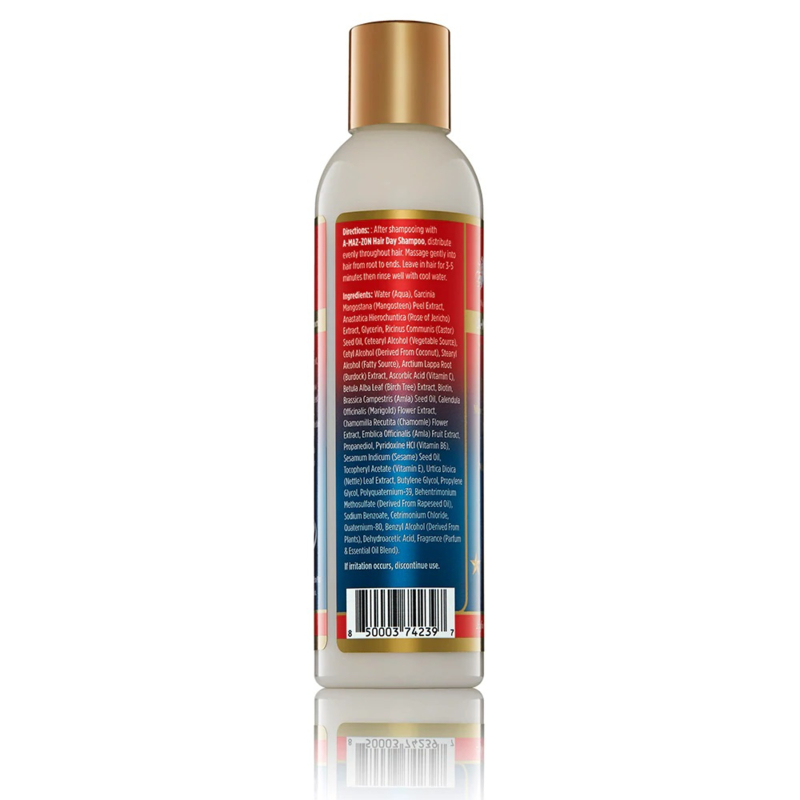 After shampooing with A-MAZ-ZON Hair Day Shampoo, distribute evenly throughout hair. Massage gently into hair from roots to ends. Leave in hair for 3-5 minutes then rinse well with cool water.