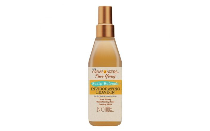 OverzichtCrème of Nature® Pure Honey Scalp Refresh collection is formulated with the signature blend of Pure Honey, Certified Natural CoCrème of Natureut Oil & Shea Butter. This collection infused with Aloe and Mint refreshes and restores moisture balance to dry scalp. The Crème of Nature Pure Honey Scalp Refresh Invigorating Leave-In has a cooling formula that invigorates dry scalp and restores moisture; it is enriched with ingredients to help reduce discomfort associated with dryness. Great for braids, locs and weaves. NO Sulfates*, NO Mineral Oil*, No SiliCrème of Naturees*, NO Petrolatum*, No Drying Alcohol** *Formulated without adding. **Formulated without adding ethanol.Crème of Nature Honey Scalp Refresh Invigorating Leave-in 8 Oz.